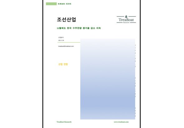 [조선산업] – 11월 글로벌 발주량 29% 감소, 한국과 중국 점유율 5:5